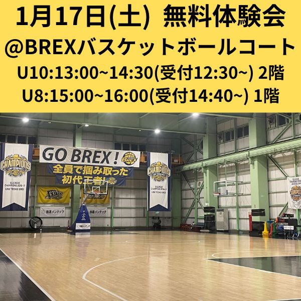 ①U10クラス体験会(新小1~新小4) BREXバスケットボールコート2階受付:12:30